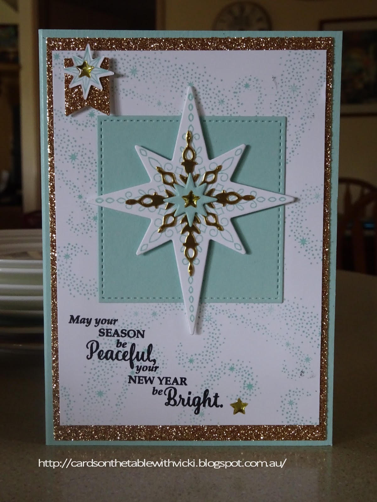 Star of Light Stamp Set was one I just had to have with the matching Starlight Thinlets dies. p.9 of the Holiday Catalogue. I don't think I have used it nearly enough though. Don't you think it makes even the most simple cards look elegant? I do.